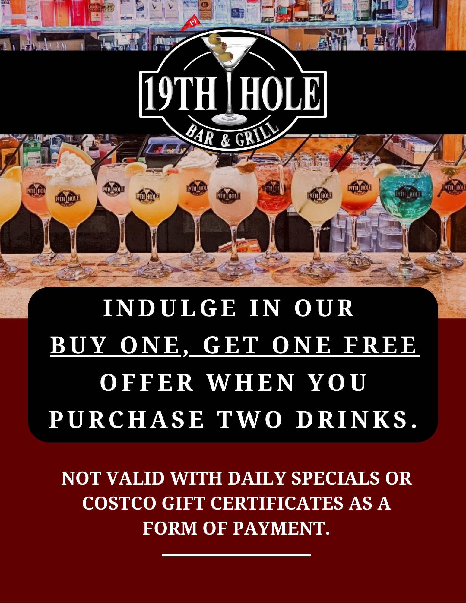 Come hungry, leave happy—see you at the 19th Hole Bar & Grill!